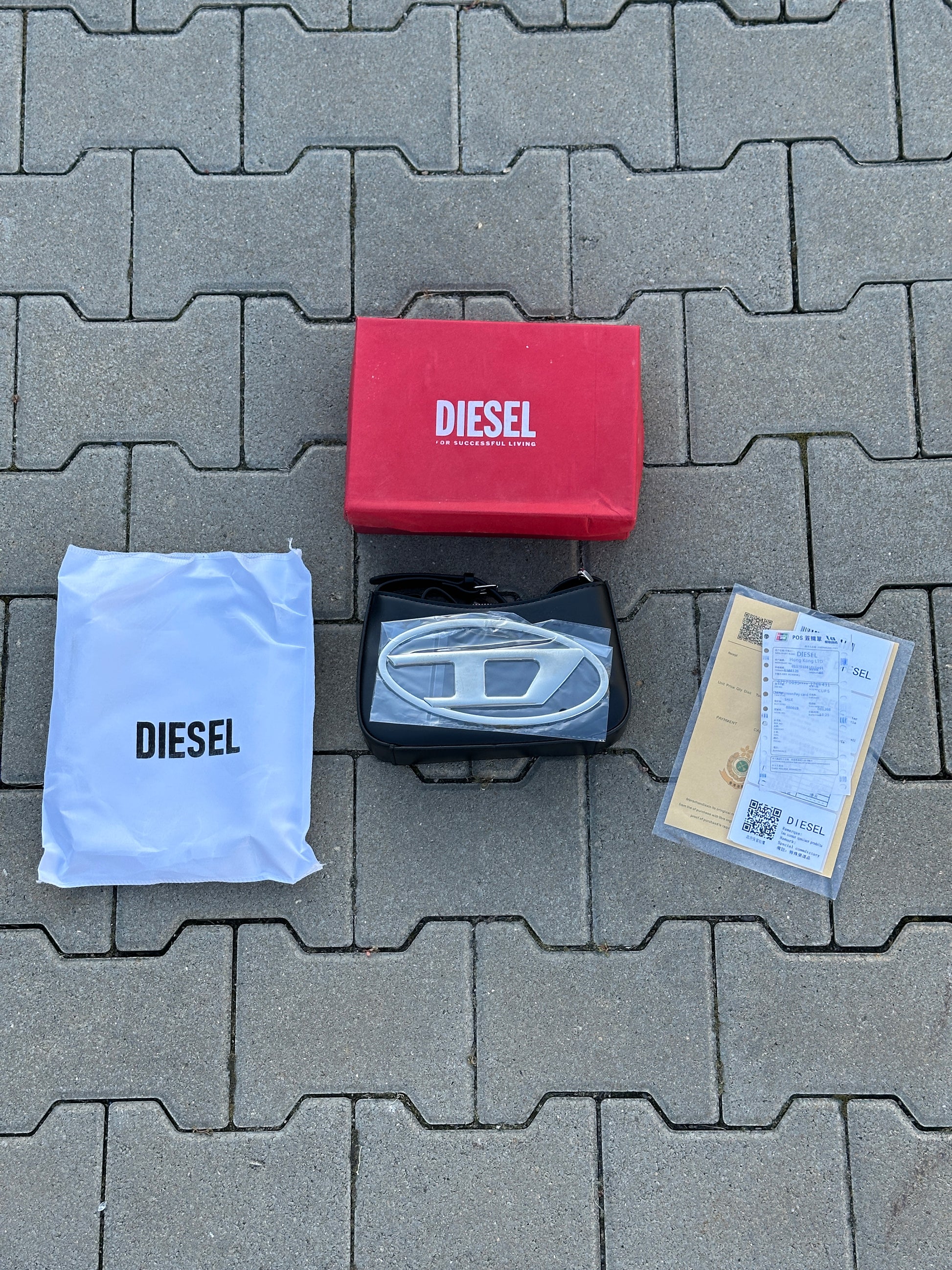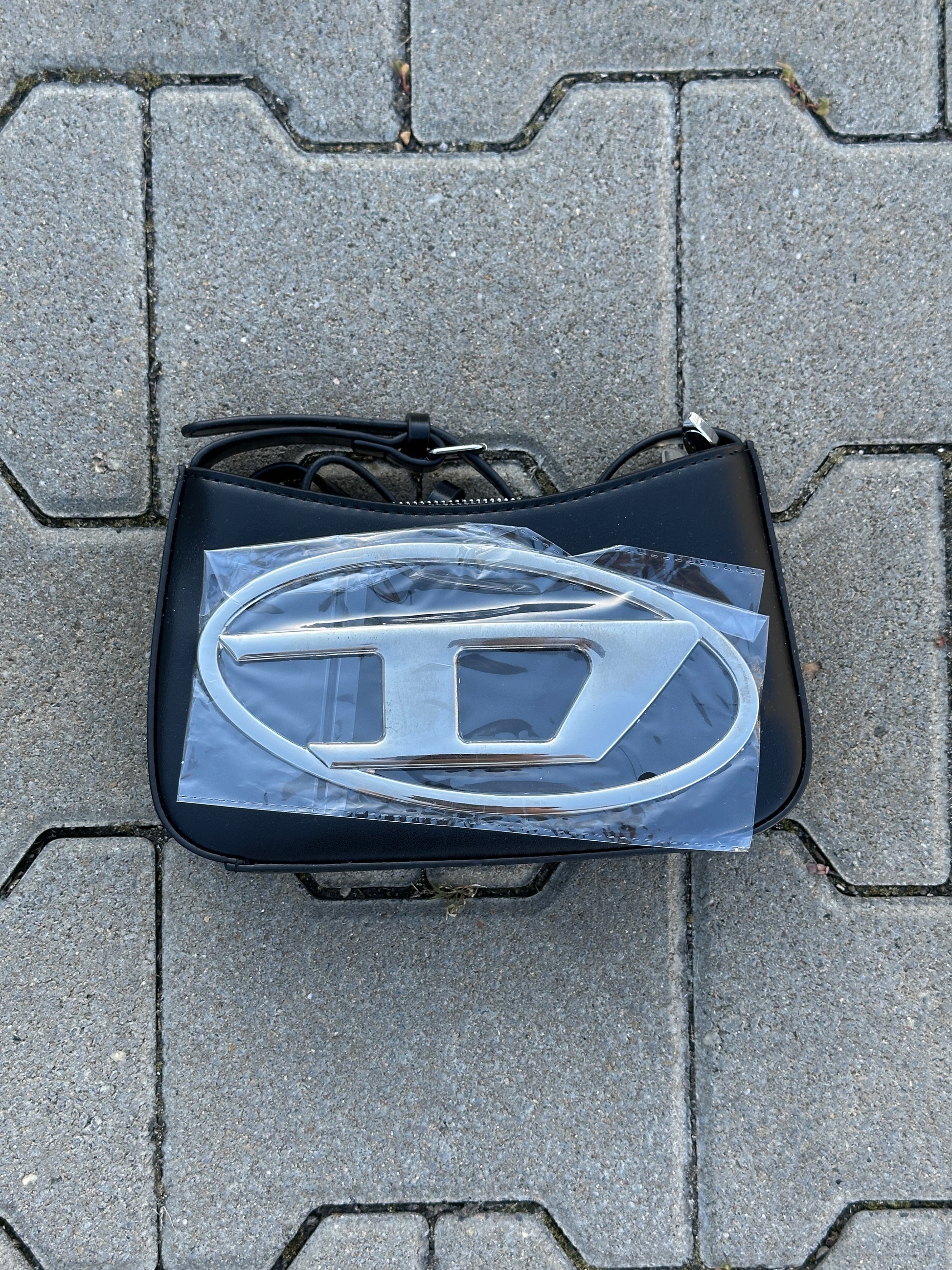 DIESEL HANDTASCHE SCHWARZ MIT OVALEM D-LOGO AUS METALL | 1:1 REPLICA