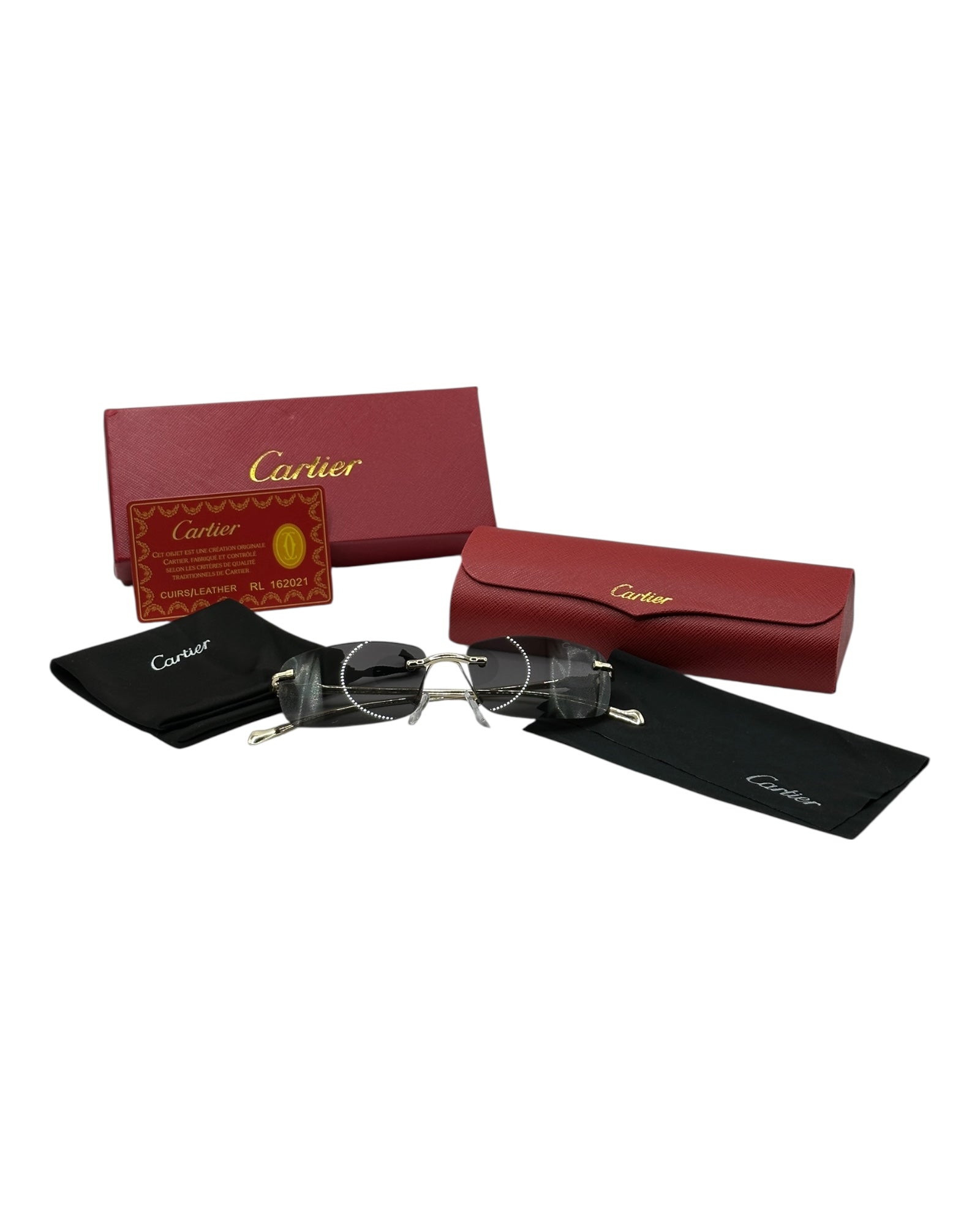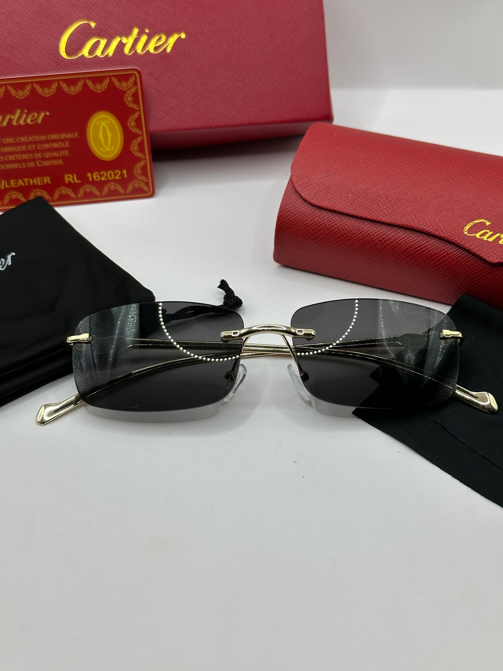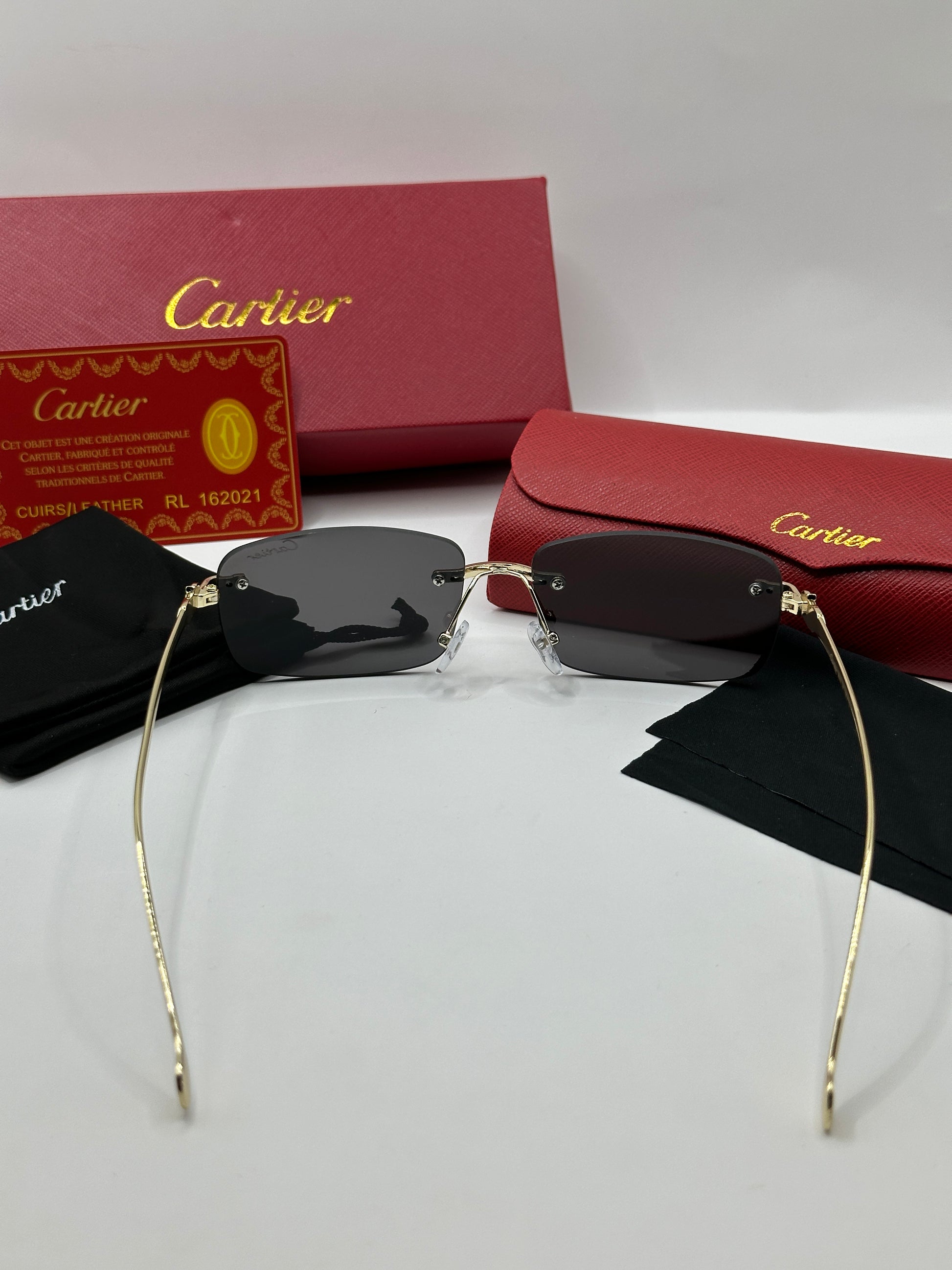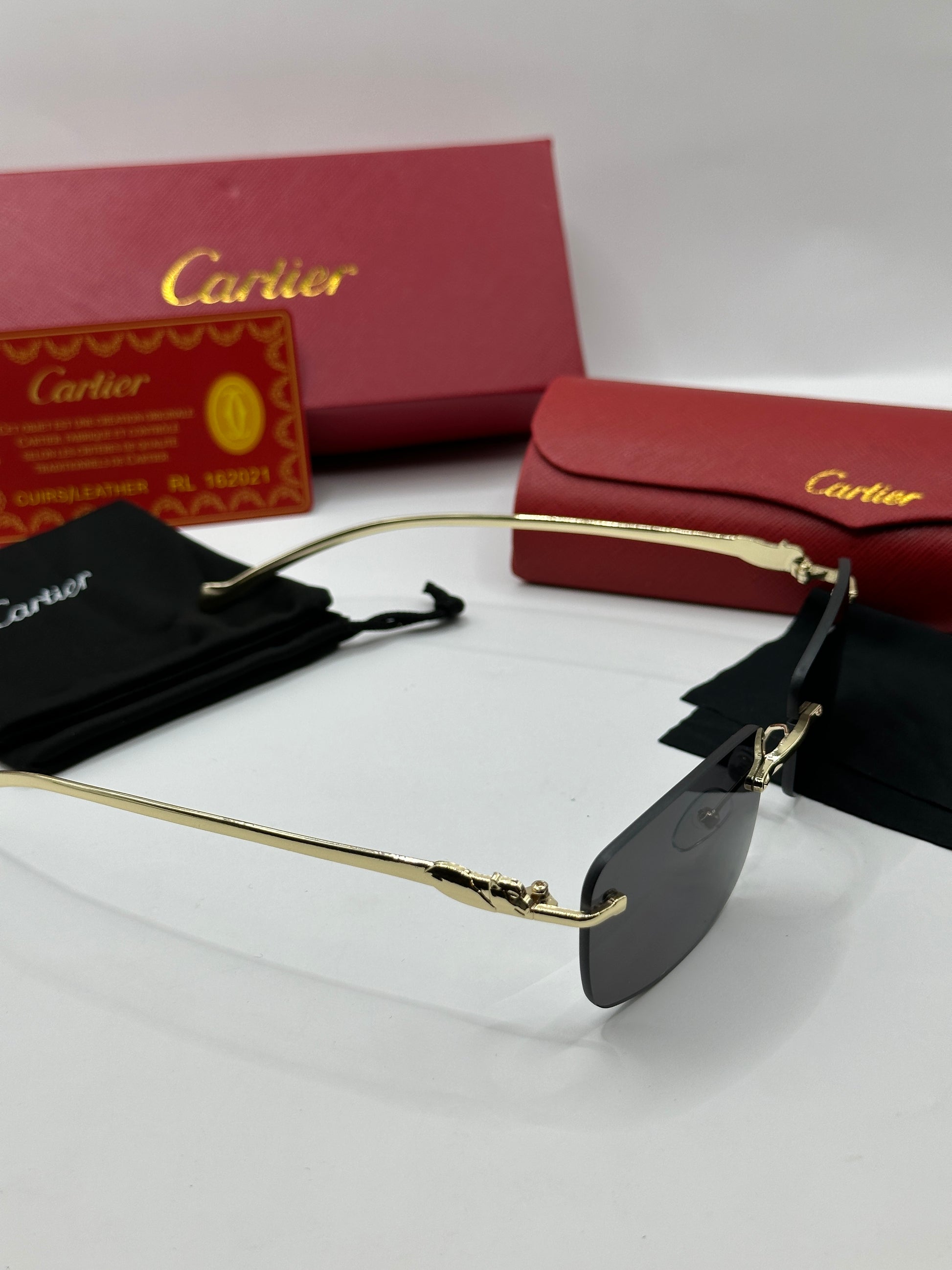 Luxuriöse Cartier-Sonnenbrille. Das Set ist komplett und enthält das Etui, das Brillenputztuch, einen Schutzbeutel und die Box.