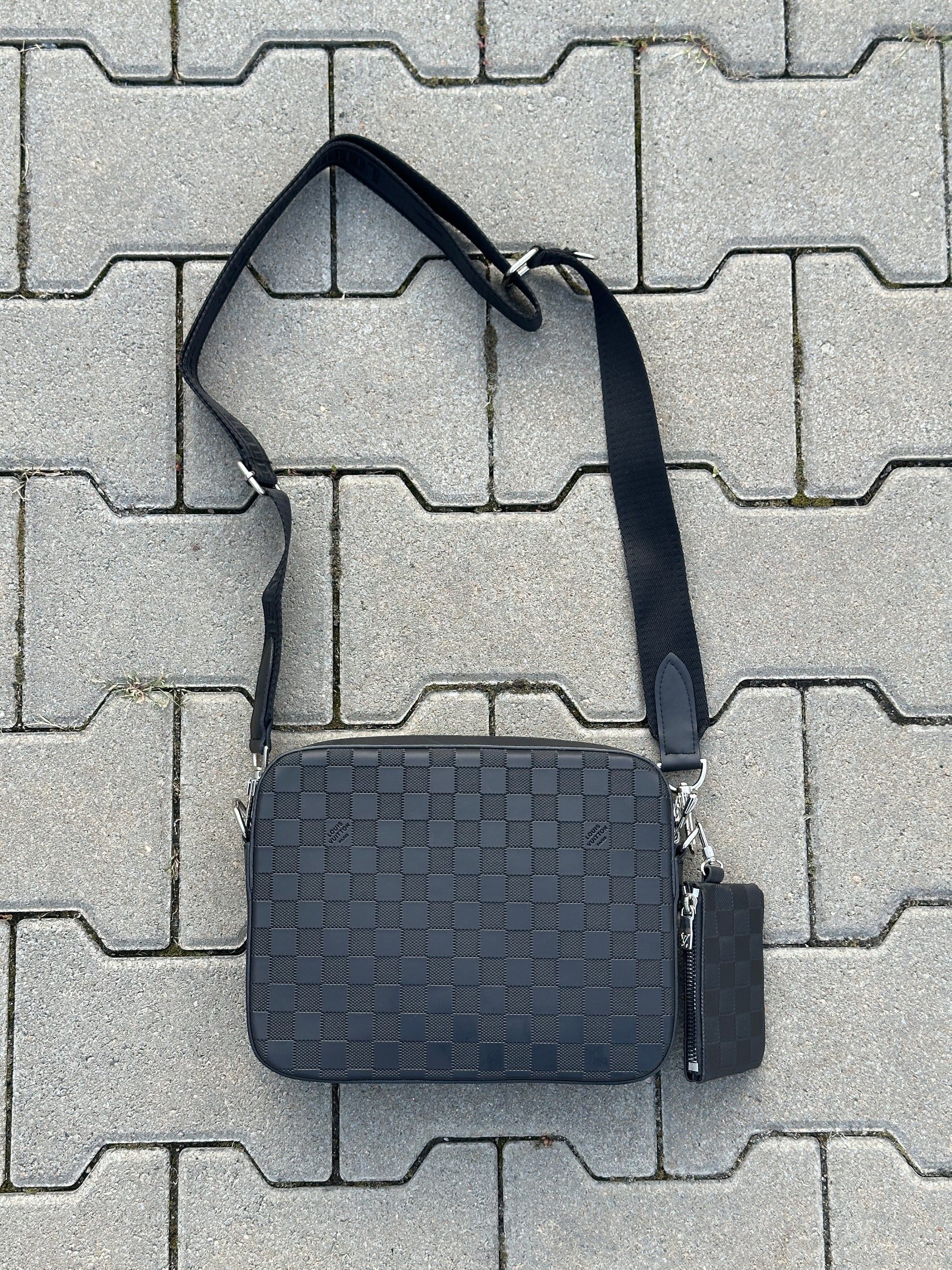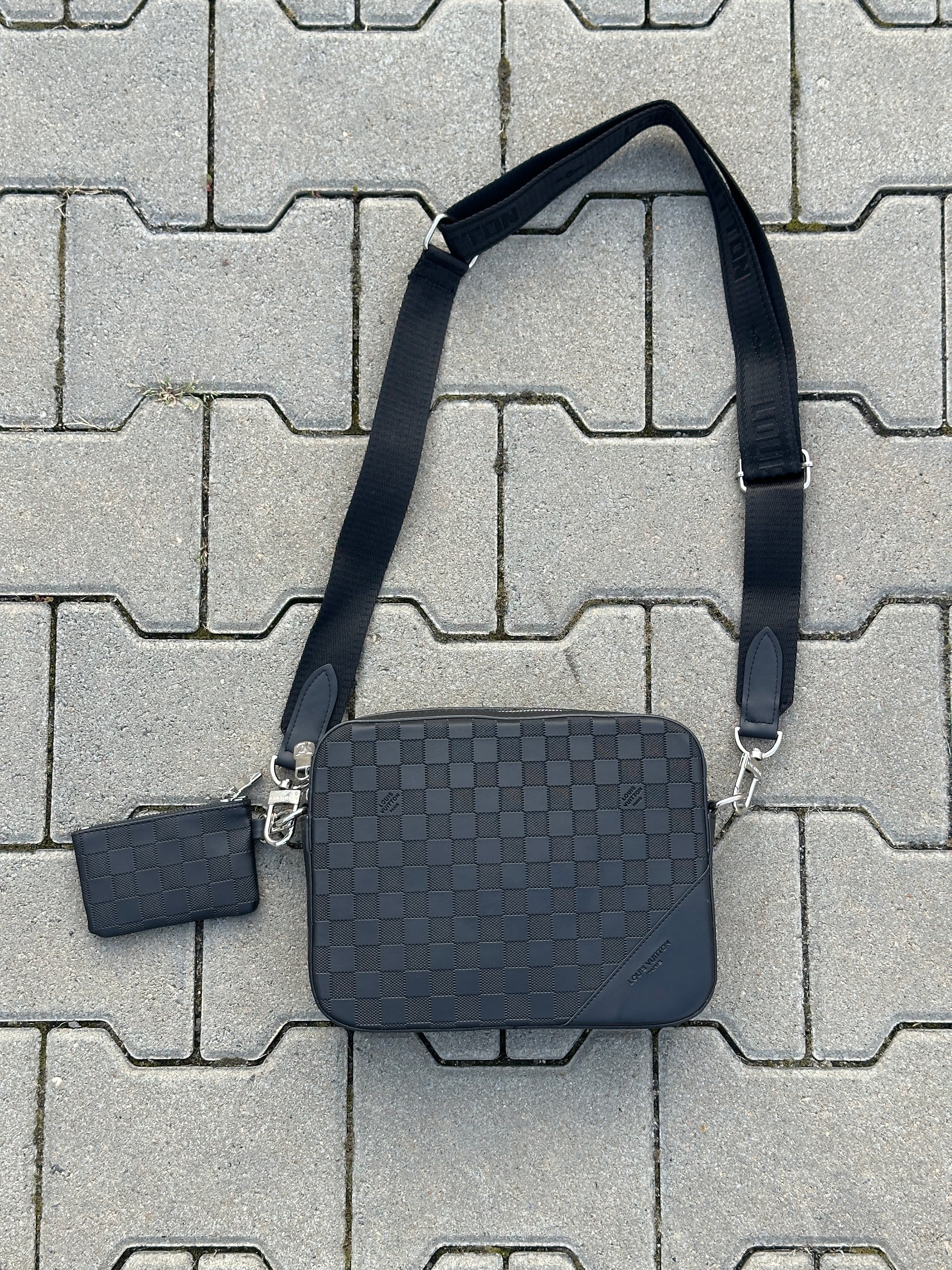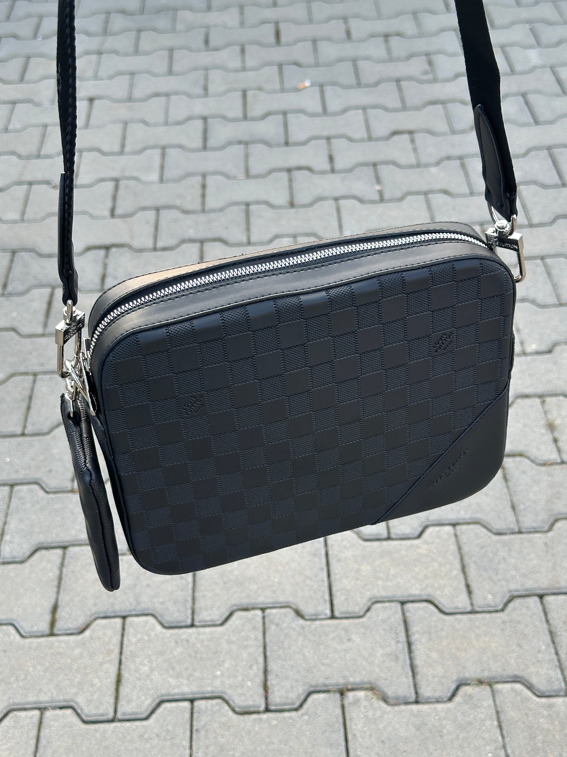 LOUIS VUITTON UMHÄNGETASCHE MIT DAMIER-MUSTER IN SCHWARZ UND MIT EINE POCHETTE 1:1 REPLICA | PU LEDER