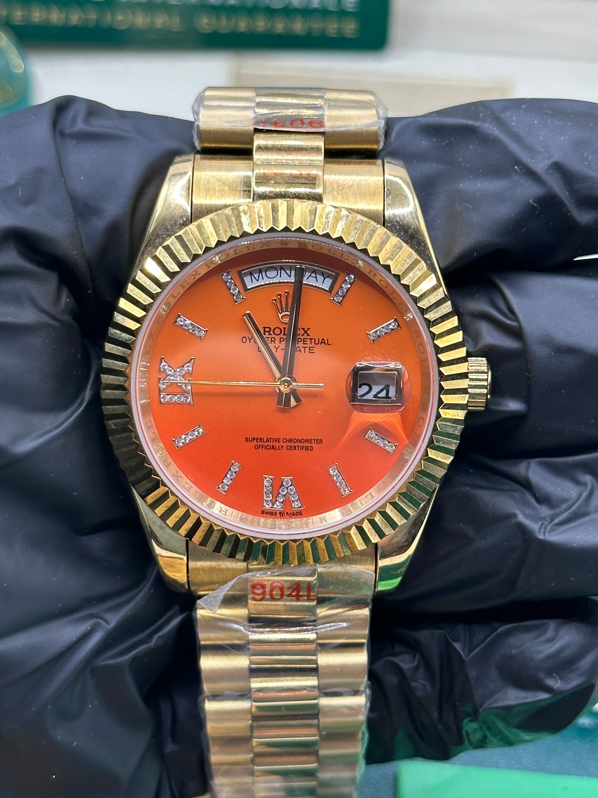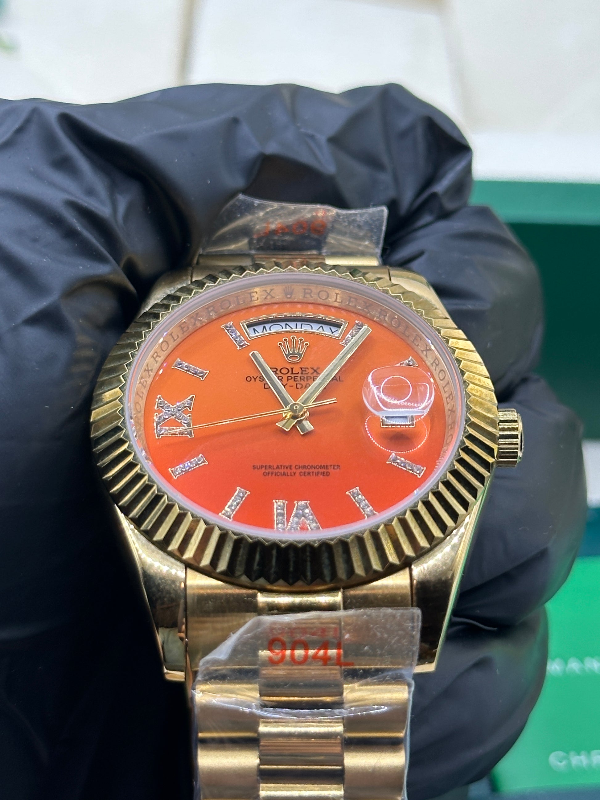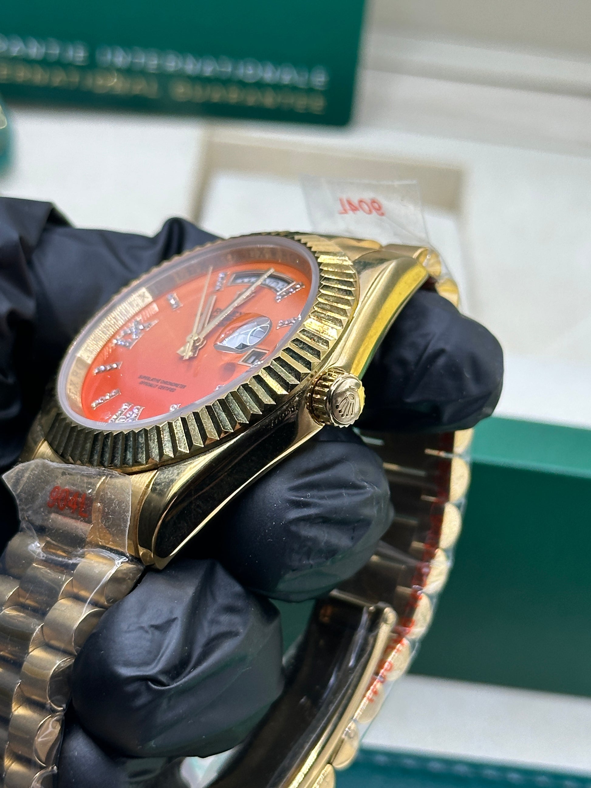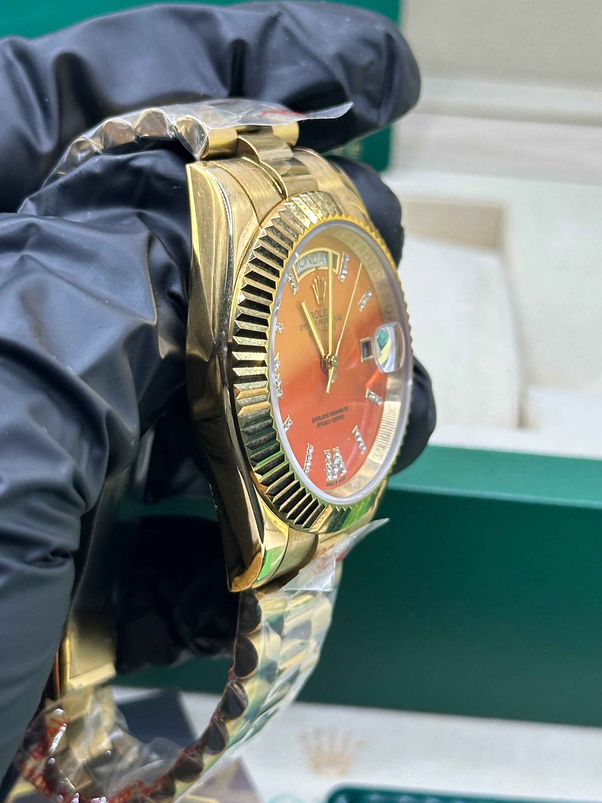 Rolex Day-Date Orange Coral Diamond Dial, 40mm Yellow Gold President - U1 FACTORY - AUTOMATIK