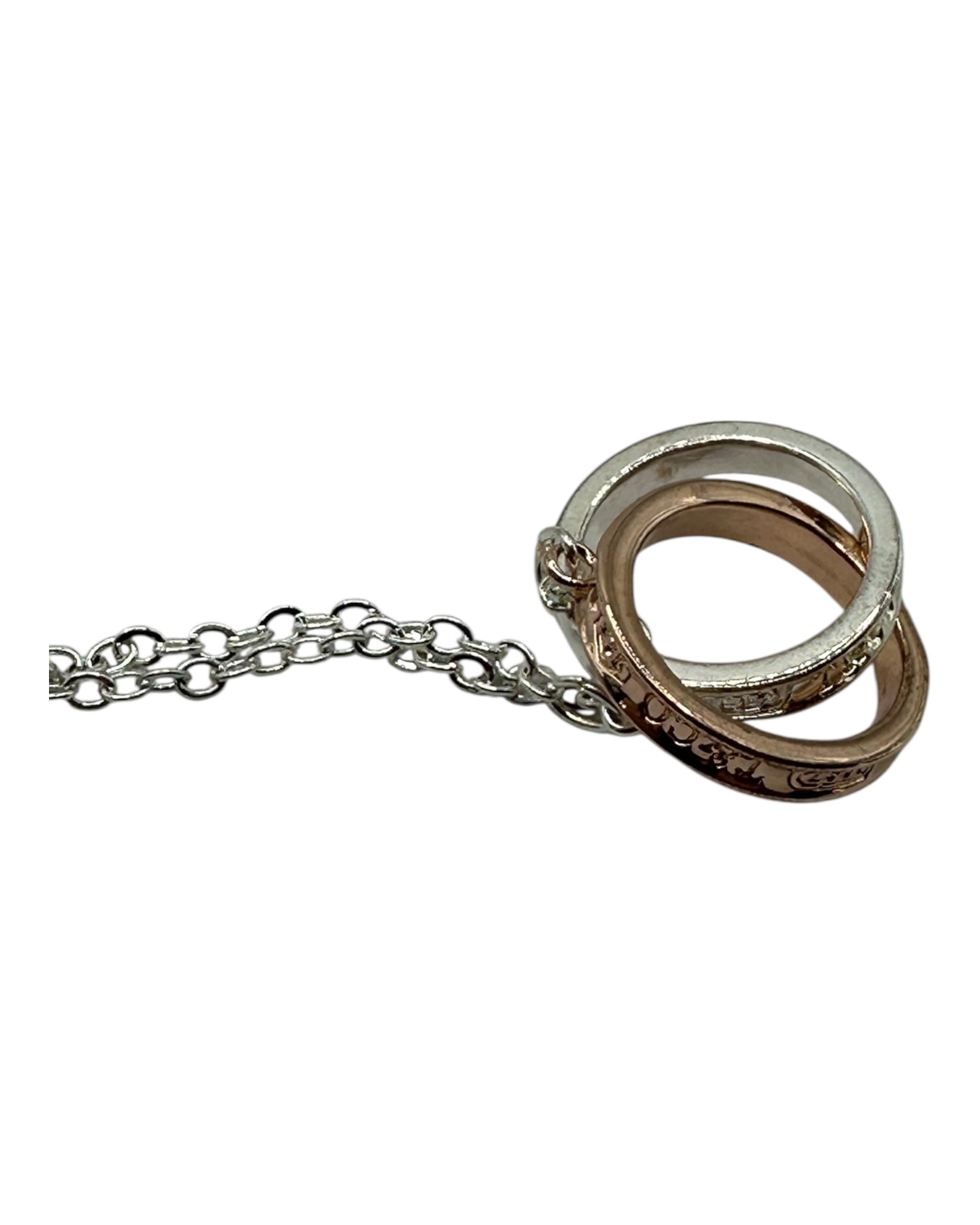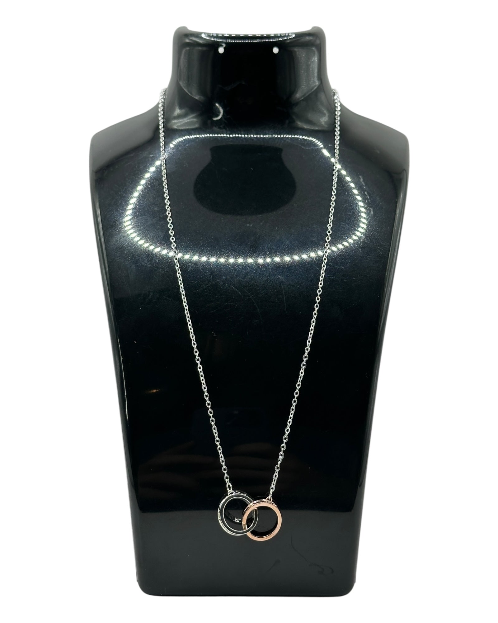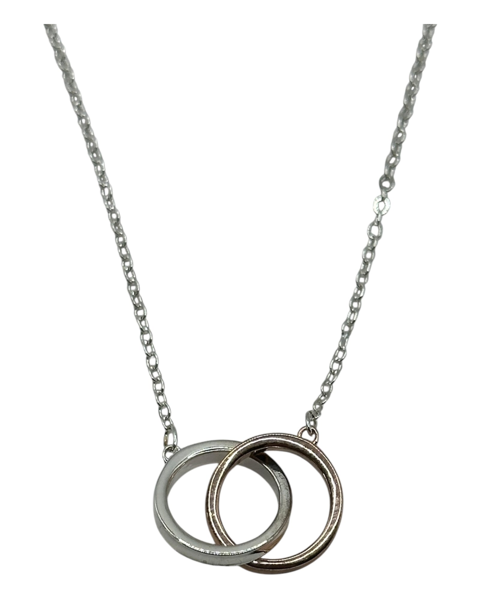 Silber- und Roségold-Halskette mit Doppelring-Anhänger