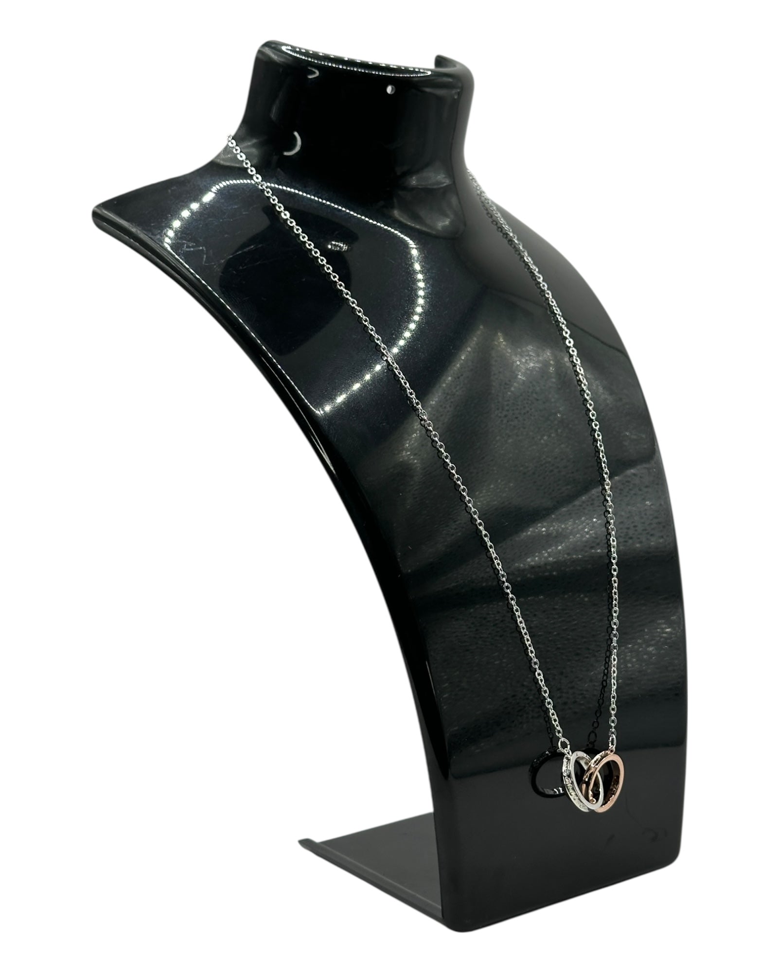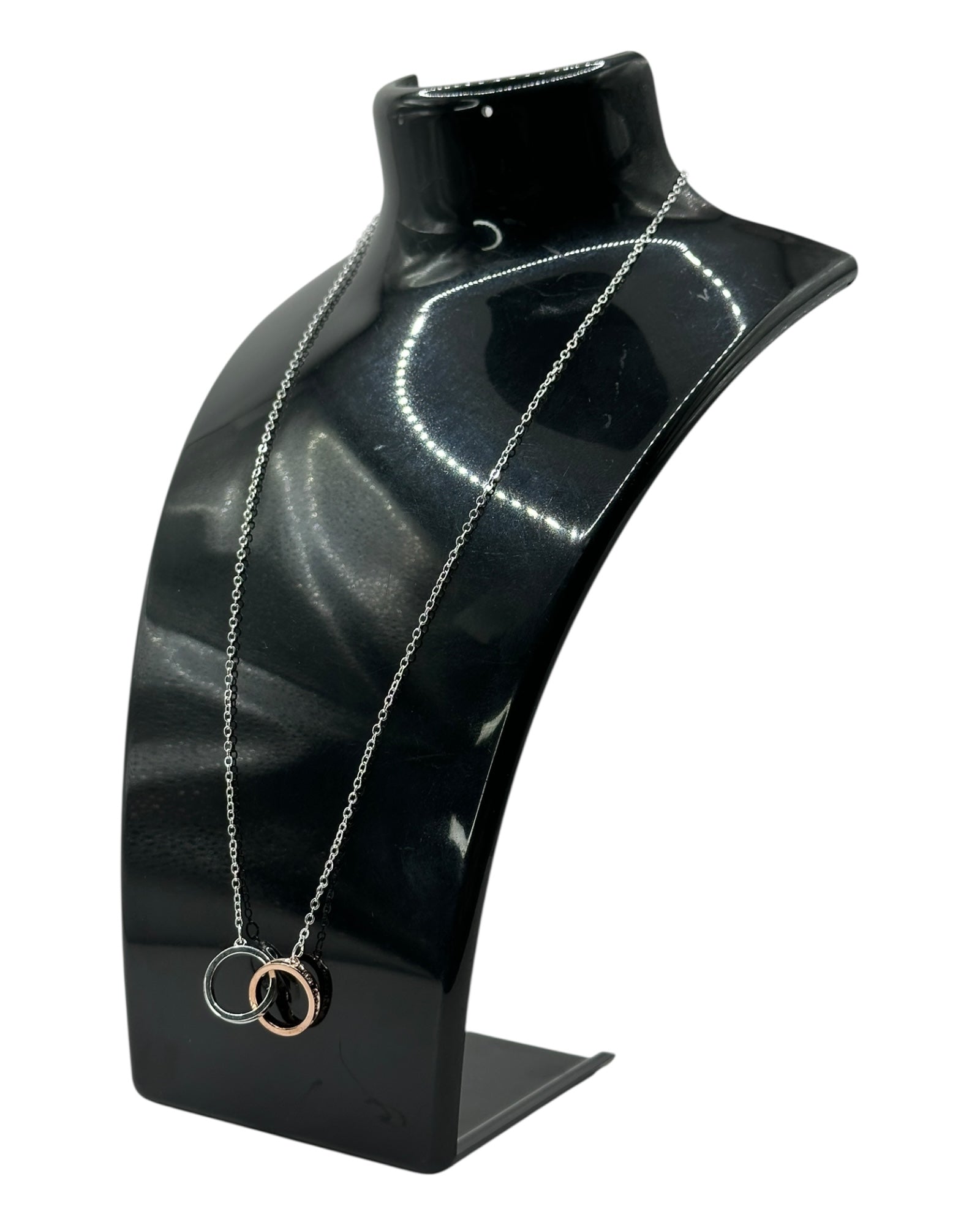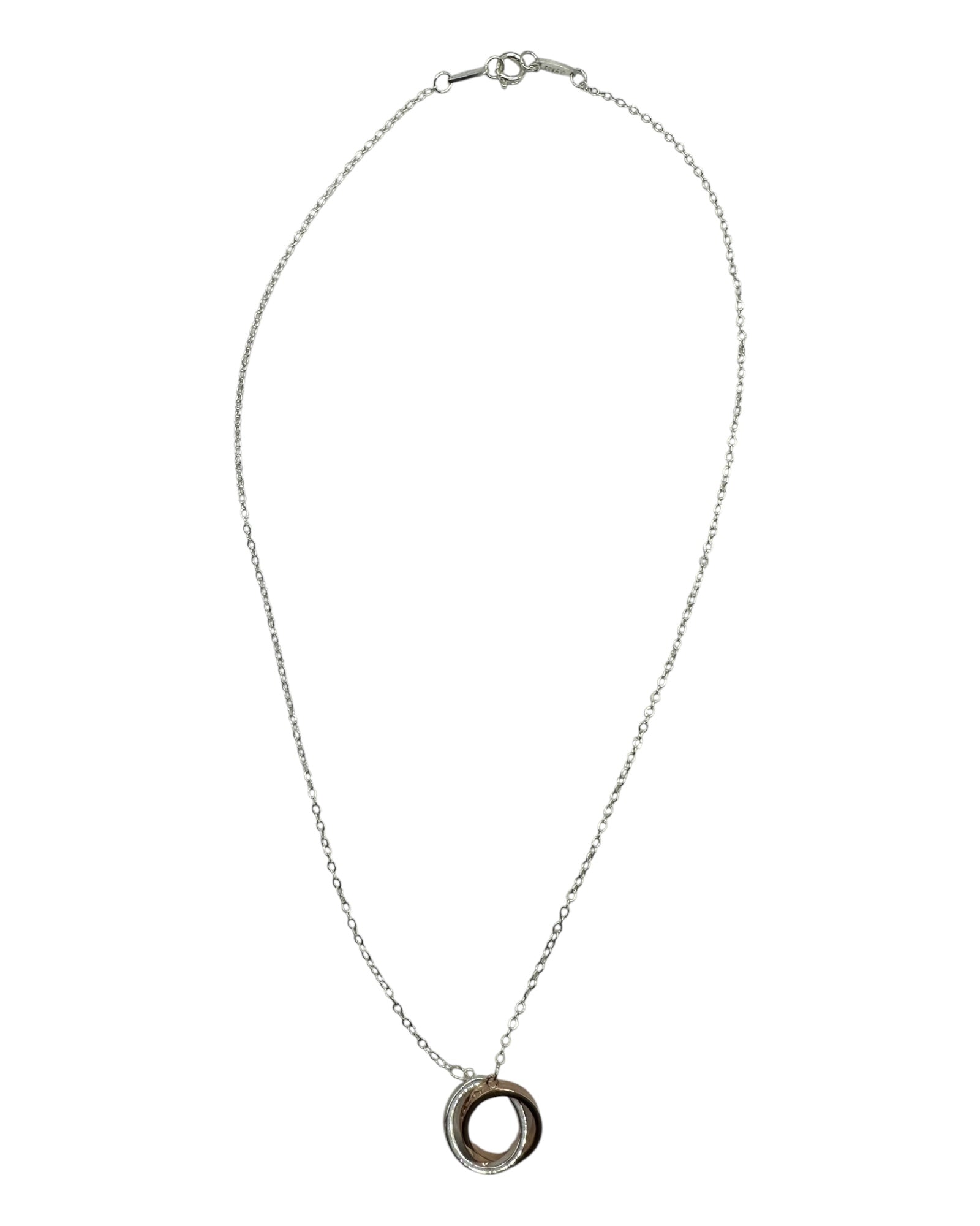 Silber- und Roségold-Halskette mit Doppelring-Anhänger